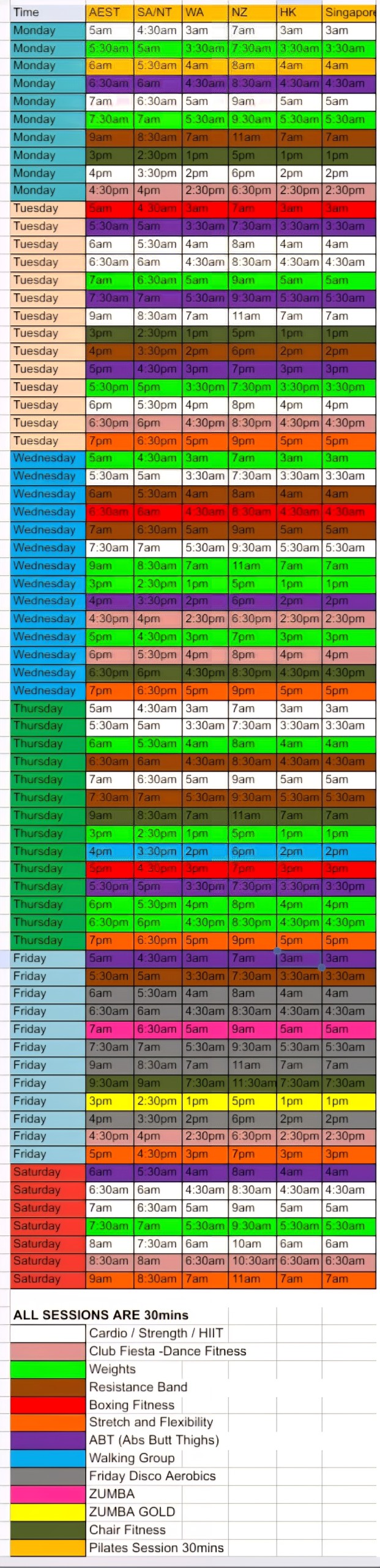 Timetable Halligan's Fitness Online Training 22nd September 2025